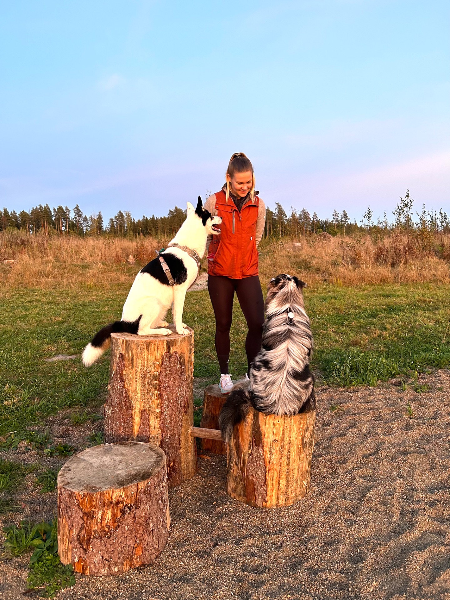 Koiraurheiluun sukelsin siperianhuskymme myötä, ja nykyisin arkeani rytmittävät myös australianpaimenkoiramme treenit agilityn ja vetolajien parissa.